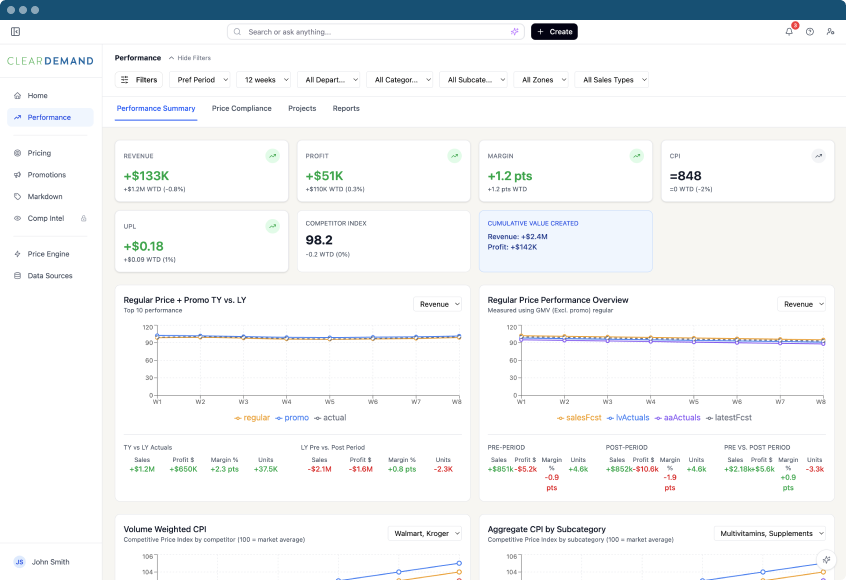 See how ClearDemand helps grocery teams replace blind spots with transparent, executable pricing strategy across price, promotions, and competition.