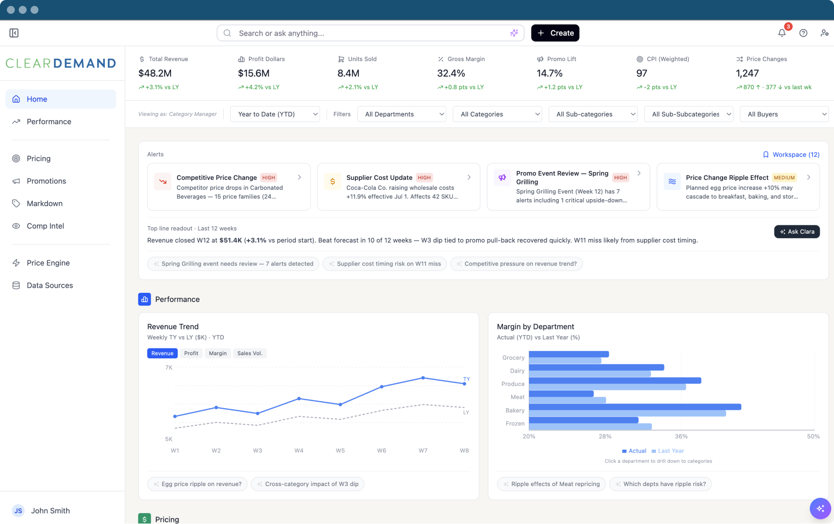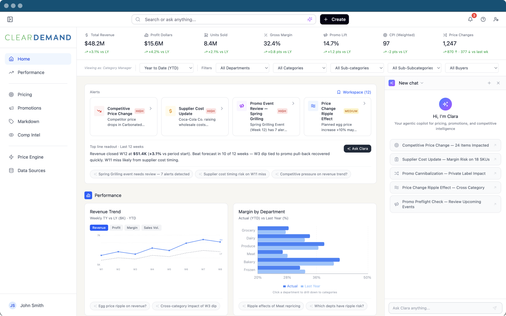 Stop leaving margin on the table. ClearDemand's AI-powered Price Optimization shows you the right price within your rules for every item, and explains exactly why.