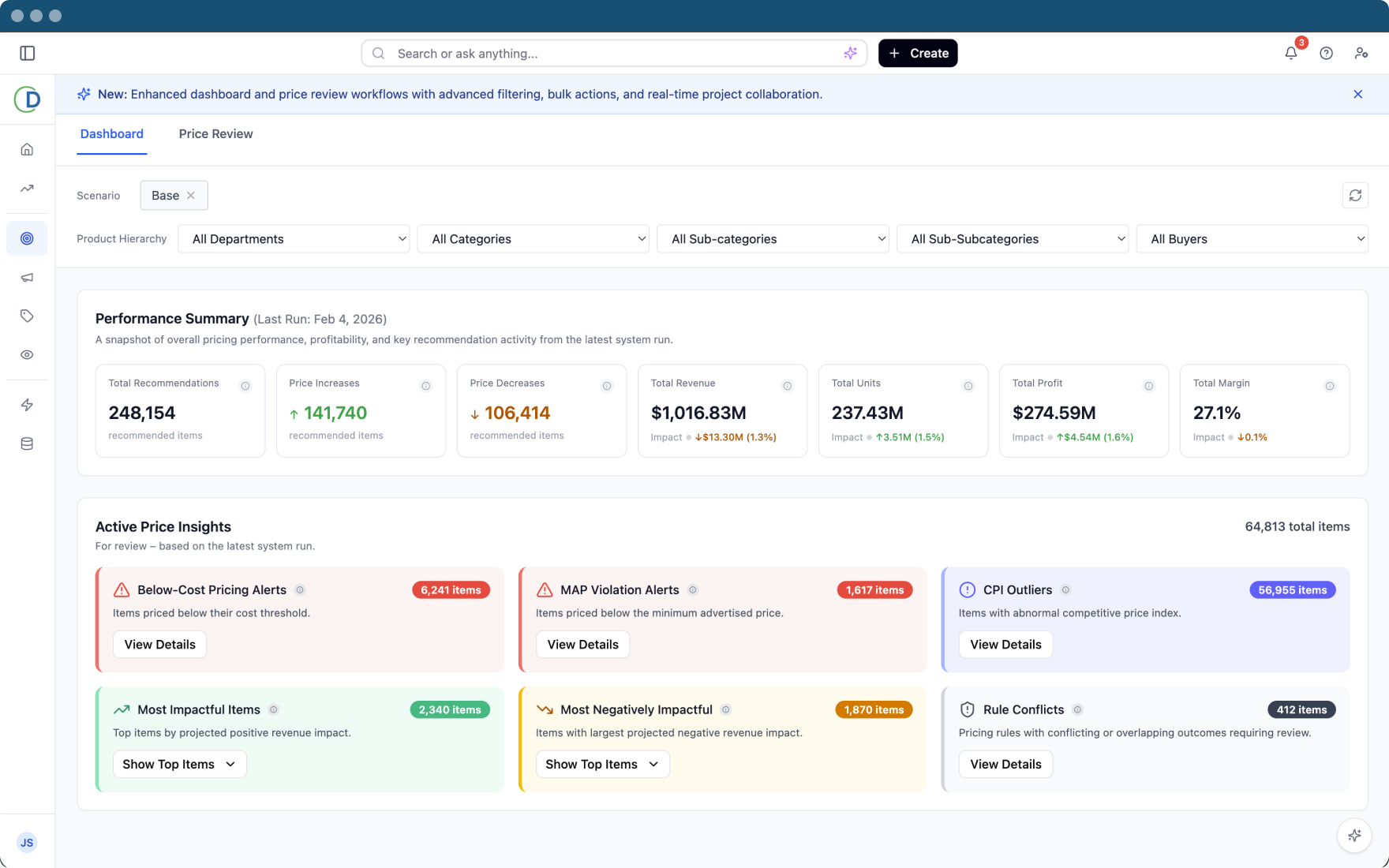 For retailers, it’s essential because manual pricing or “across-the-board” changes often leave money on the table and create price inconsistencies that erode trust. Price optimization lets retailers compete strategically (using real demand and market data) so they can grow margins while delivering fair, consistent prices shoppers value.