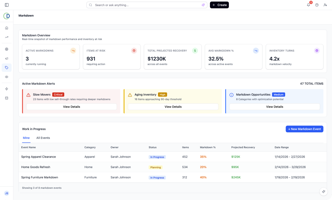 - Adjust markdowns to fir your strategy